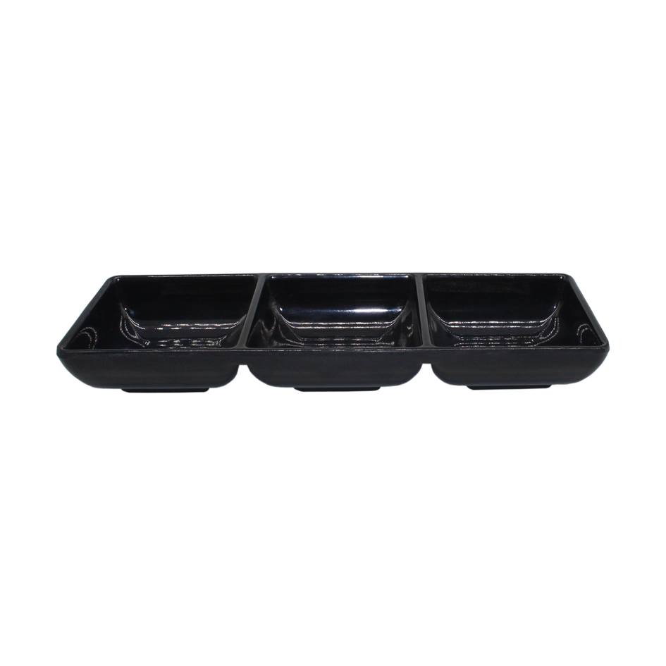 SALSERA CUADRADA COMPARTIMIENTO TRIPLE NEGRO