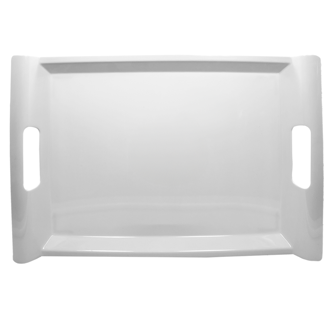 BANDEJA RECTANGULAR CON ASA MEDIANA BLANCA