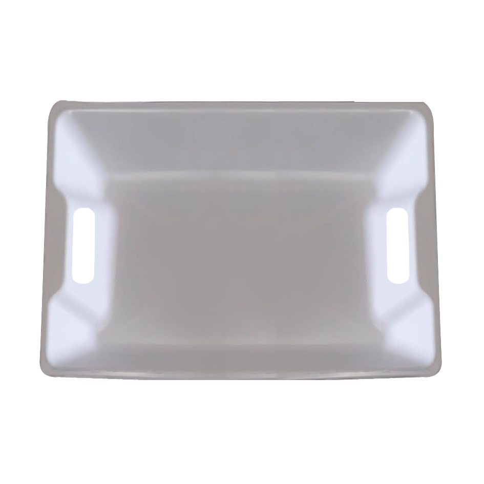 BANDEJA RECTANGULAR CON ASA MEDIANA BLANCA.