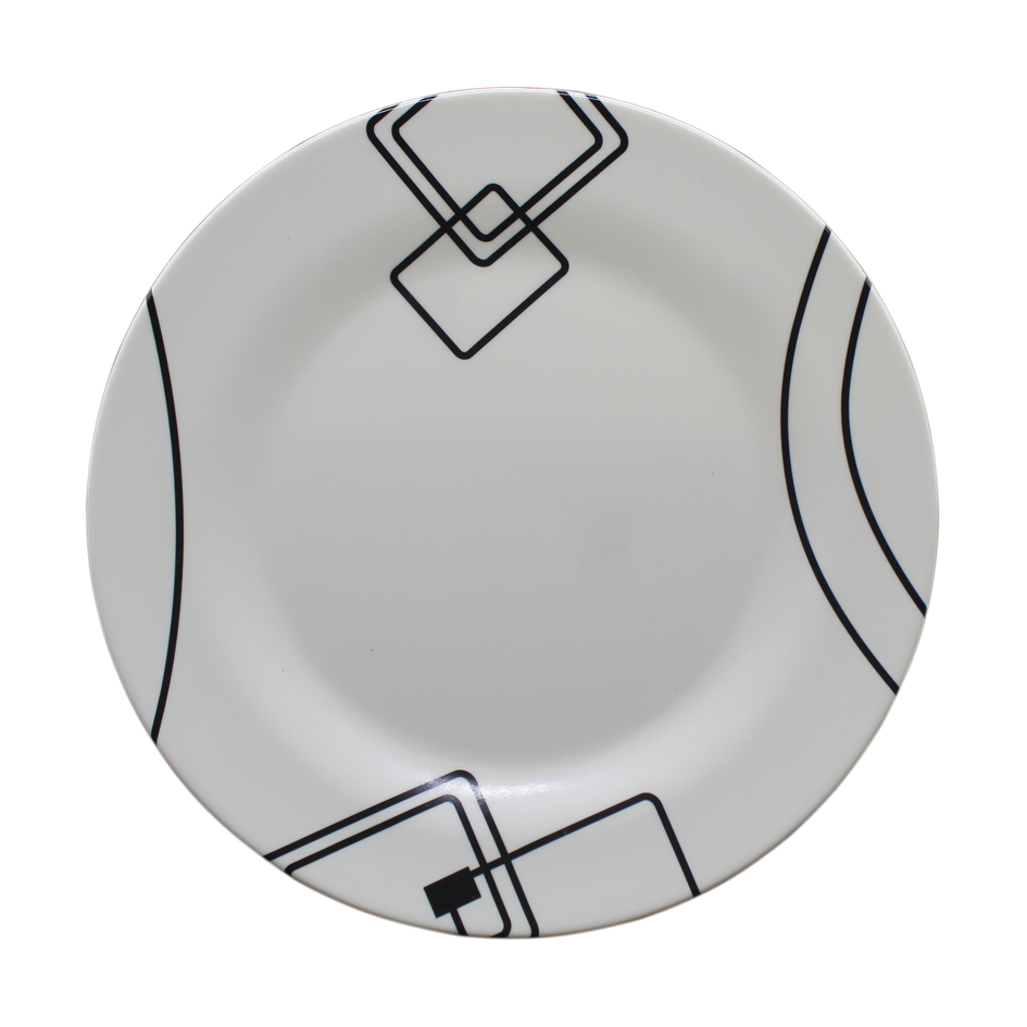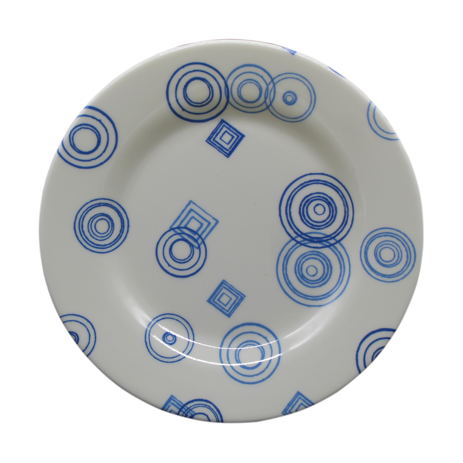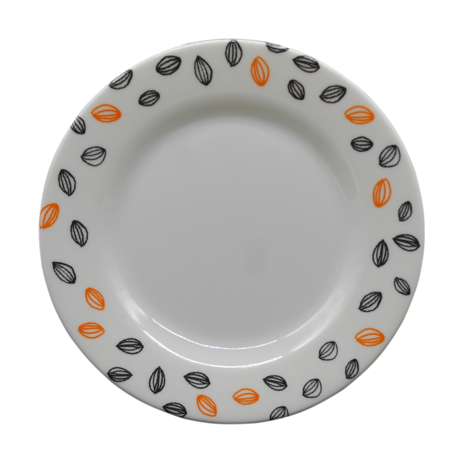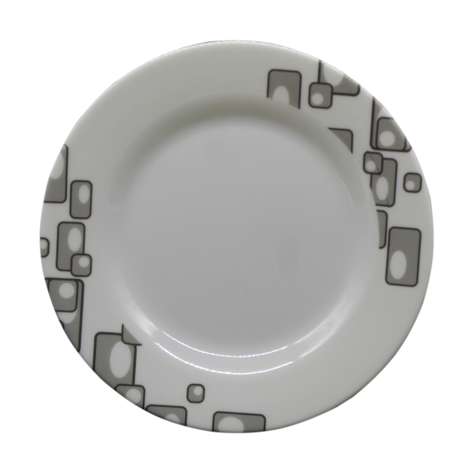 Plato en melamina blanca con diseño.