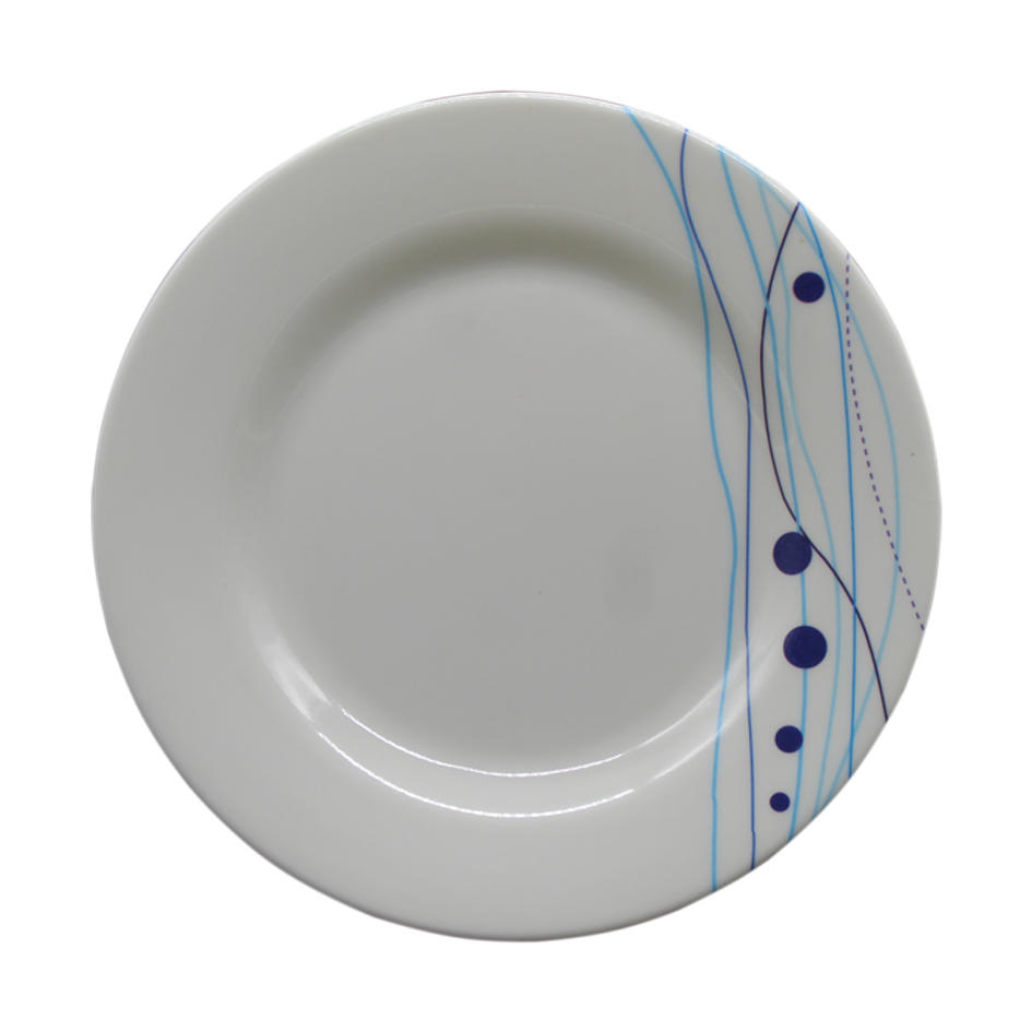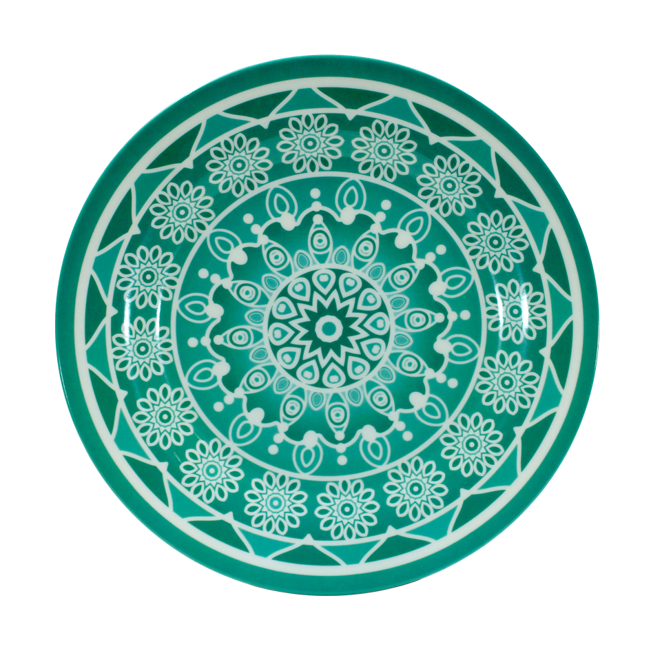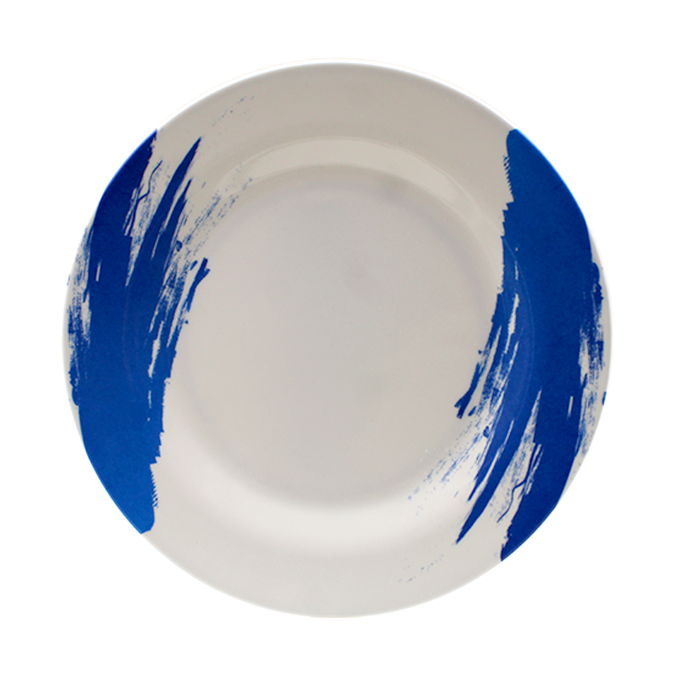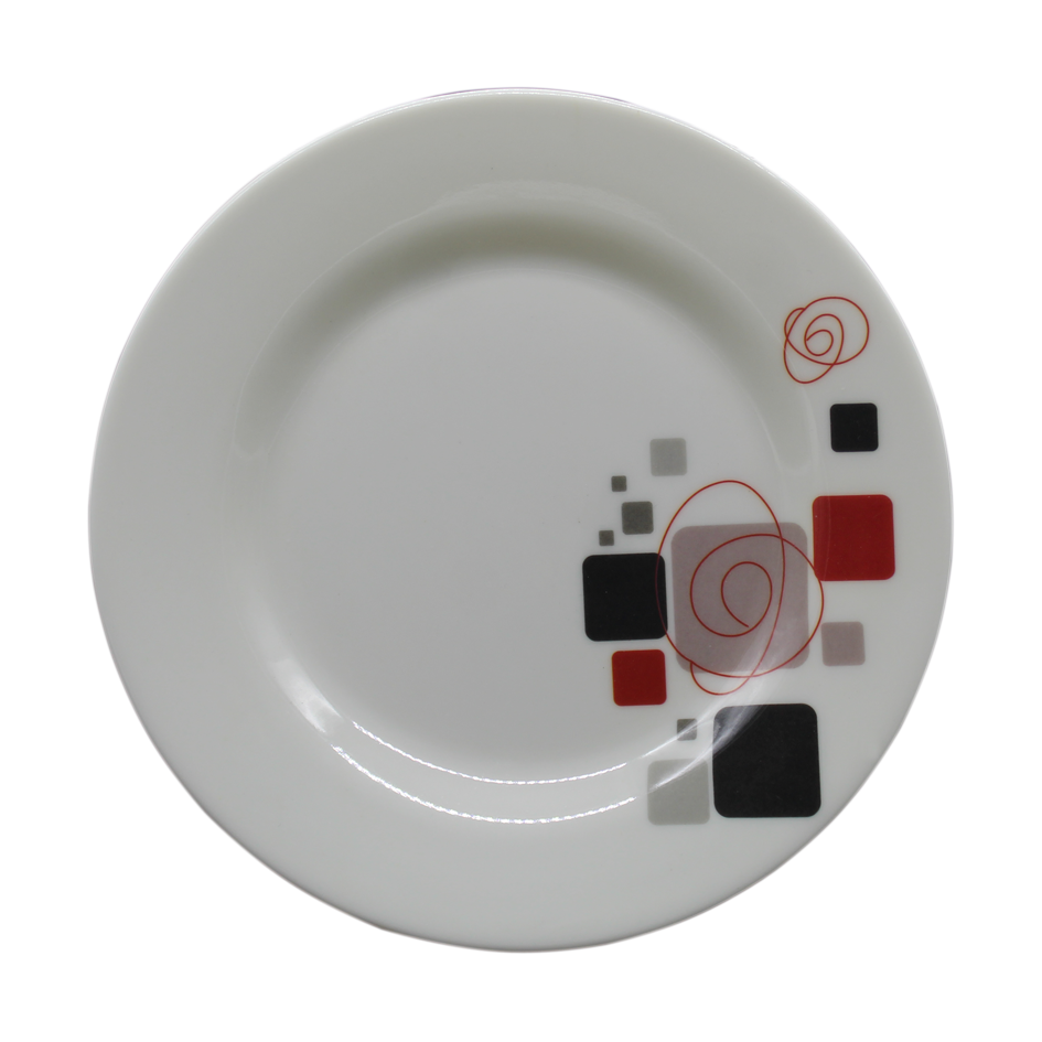 Plato en melamina blanca con diseño.
