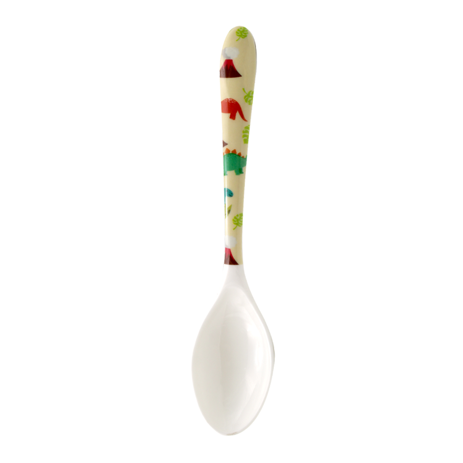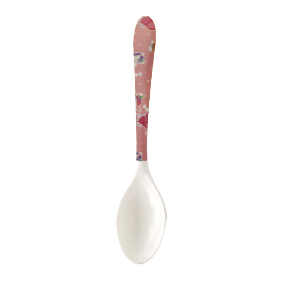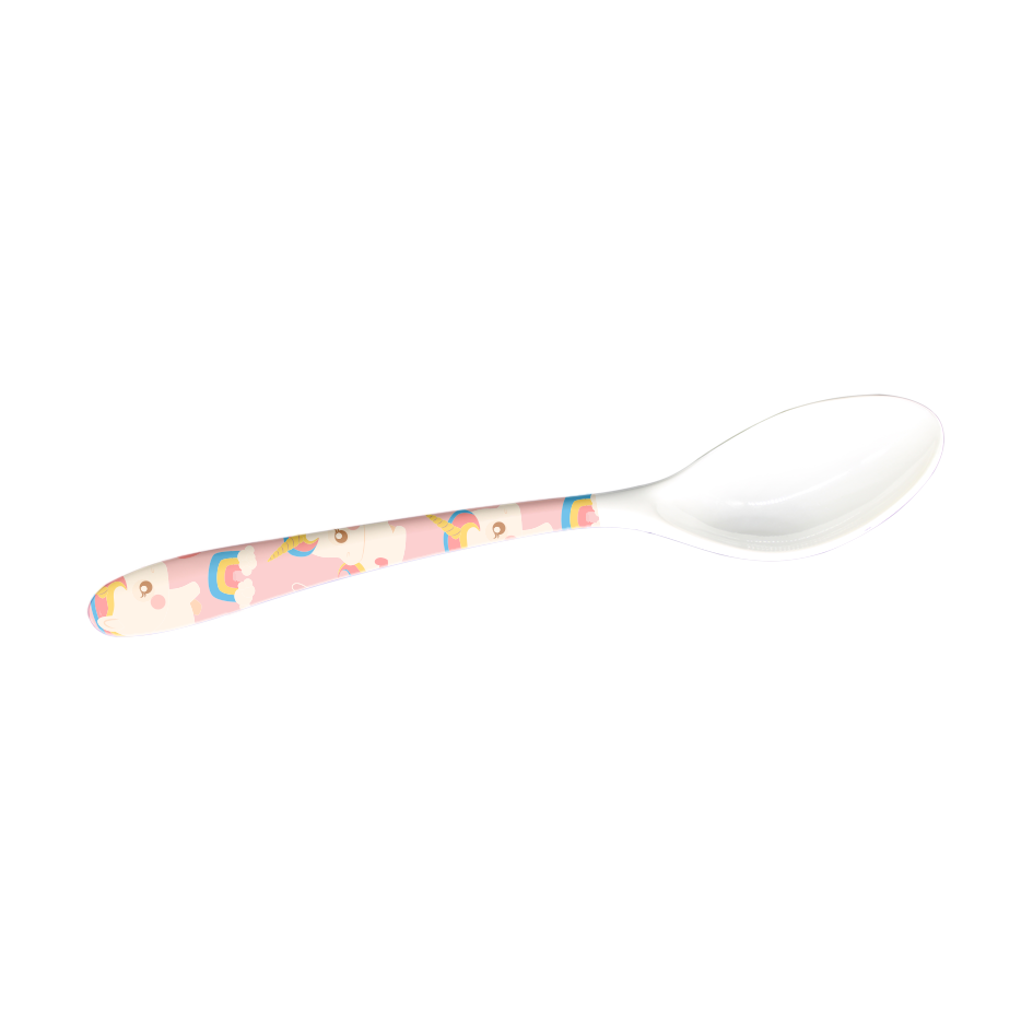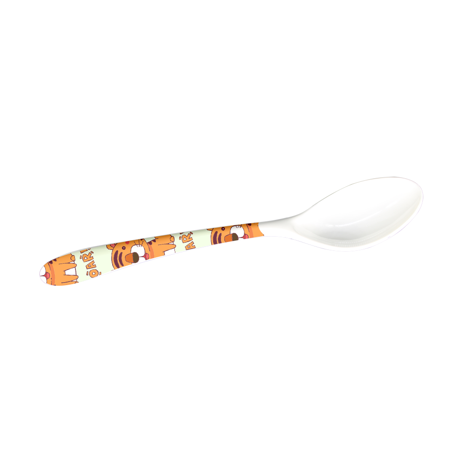 Cuchara en melamina blanca con diseño.
