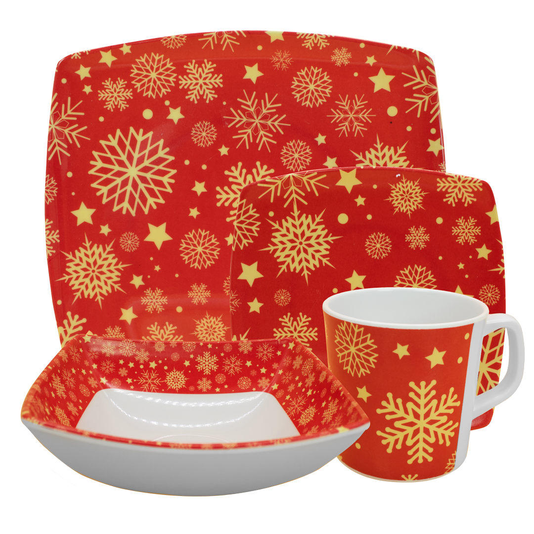 • Vajilla Aster en melamina blanca con diseño Navideño.